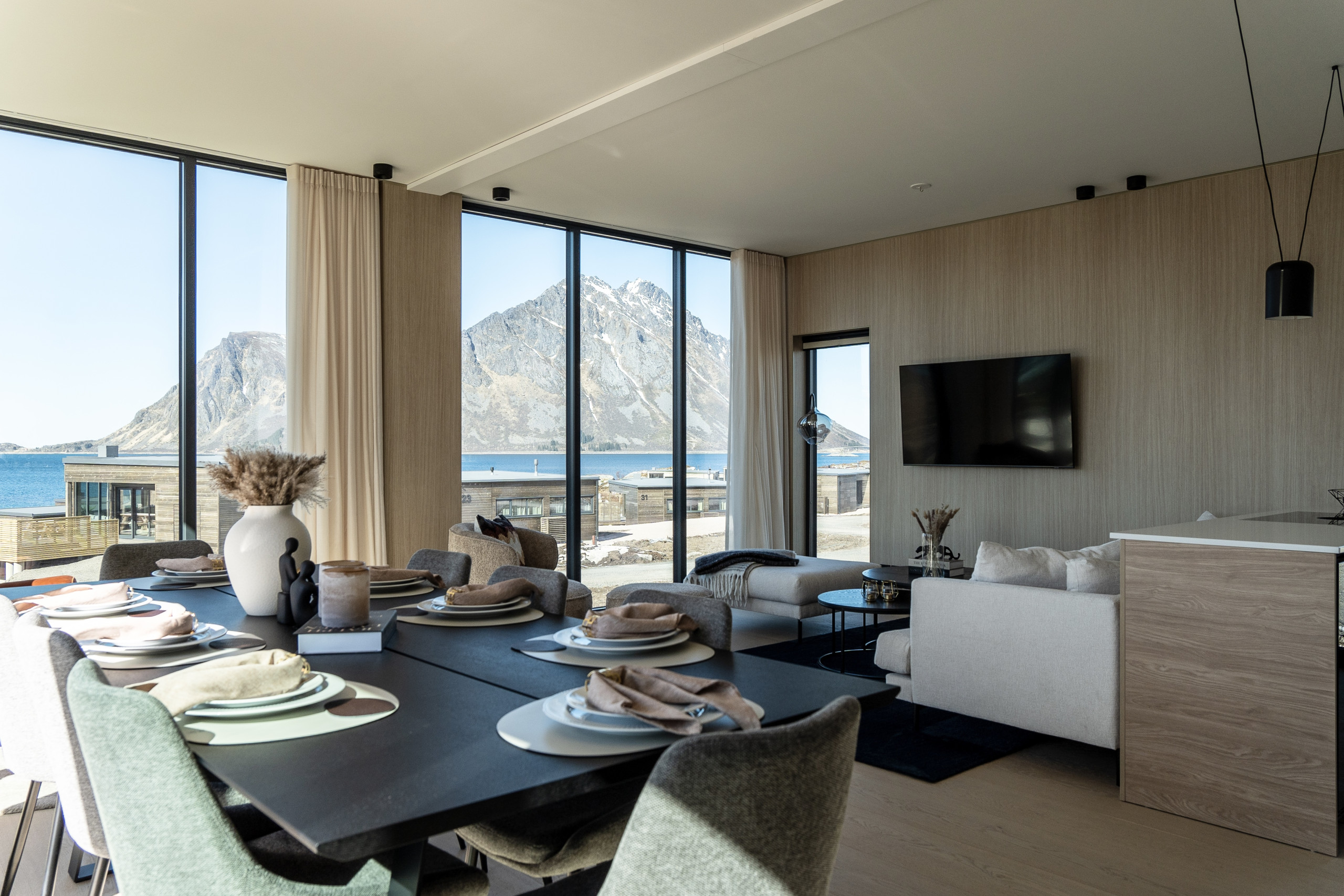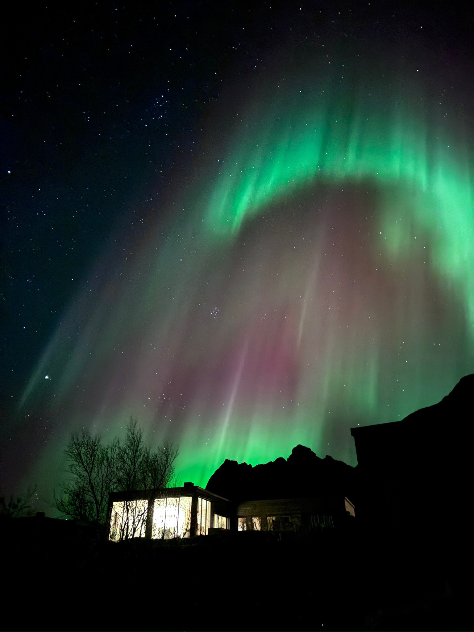 Welcome to our luxury Lodge in Lofoten, where comfort meets the wild beauty of Lofoten! Here you can enjoy a wide panoramic view of the midnight sun (never) setting in the ocean and the northern lights dancing over dramatic mountains...